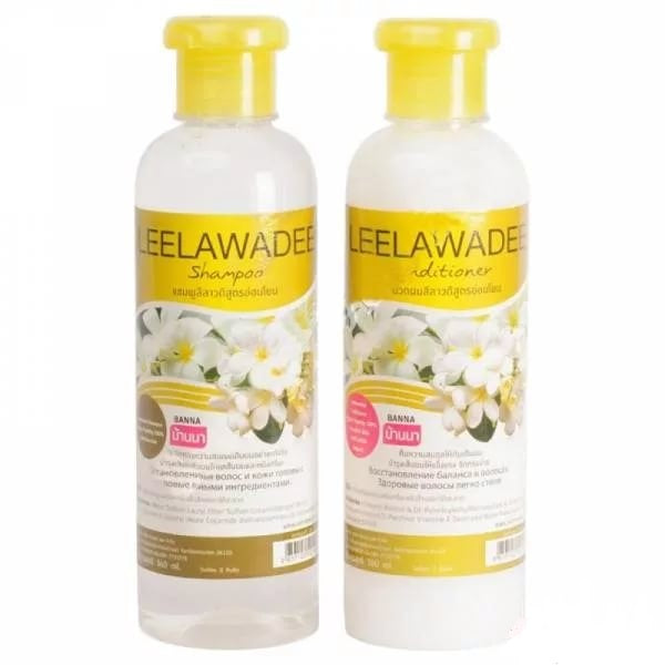 Active components Leelawadee Shampoo and Conditioner to protect and give shine to hair, leaving light pleasant scent of frangipani flower known.
