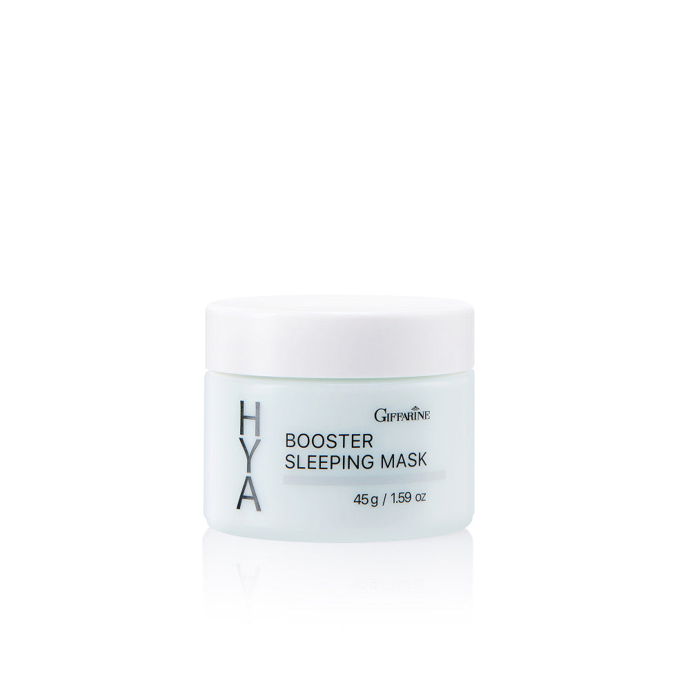 Giffarine Hya Booster Sleeping Mask is a highly concentrated moisturizing product with a gel texture is formulated for intensive hydration visibly glowing and smooth complexion without leaving any greasy effect.