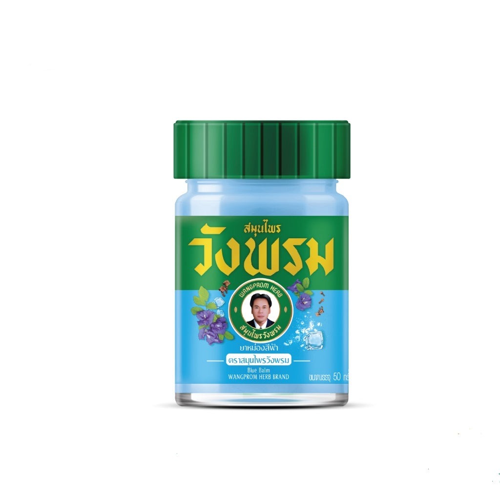 Wang Prom Blue Herbal Balm (cold effect) relieves dizziness and nasal congestion.